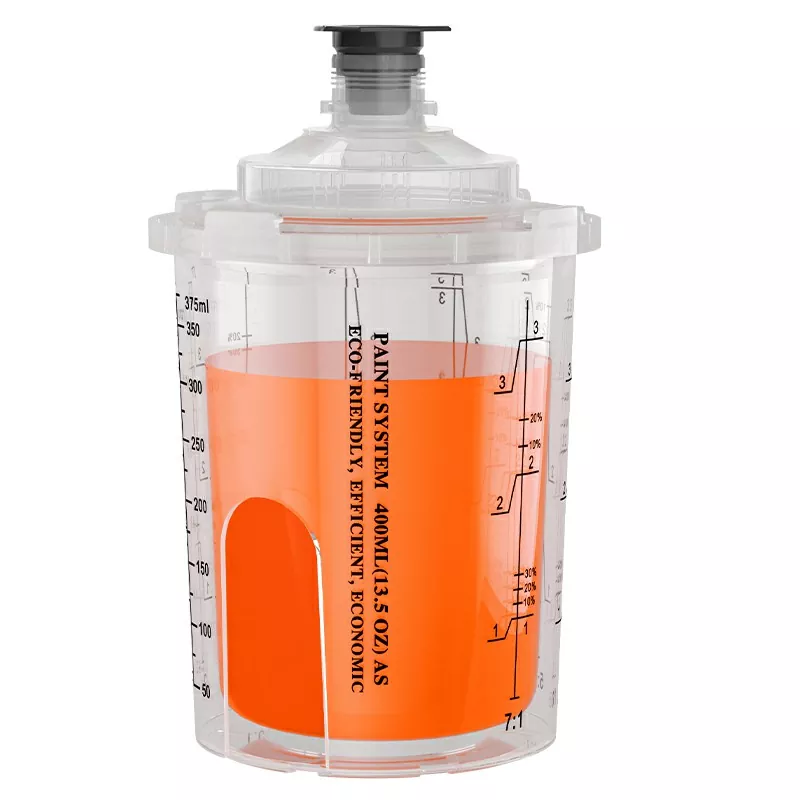 نظام كوب الرذاذ القابل للتصرف سعة 400 مل عبارة عن كوب طلاء يمكن التخلص منه مصمم للإصلاحات المكونة من لوحتين، وهو مناسب للمناطق التي تتطلب 13.5 أونصة سائلة (400 مل) أو أقل من المواد، مثل المصدات. لقد قام بترقية تصميم الفوهة استنادًا إلى سلسلة AYS1.0. لا يعمل تصميم الفوهة الحاصل على براءة اختراع على تحسين الختم فحسب، بل يحسن أيضًا تأثير الرش. باعتبارها الشركة المصنعة لنظام أكواب الرش القابل للتصرف في الصين، قامت AYSPAT بتحسين تصميم أكواب الرش القابل للتصرف بشكل مستمر، ونحن ملتزمون بالبحث والتطوير وإنتاج أكواب رذاذ يمكن التخلص منها أكثر ملاءمة وكفاءة.