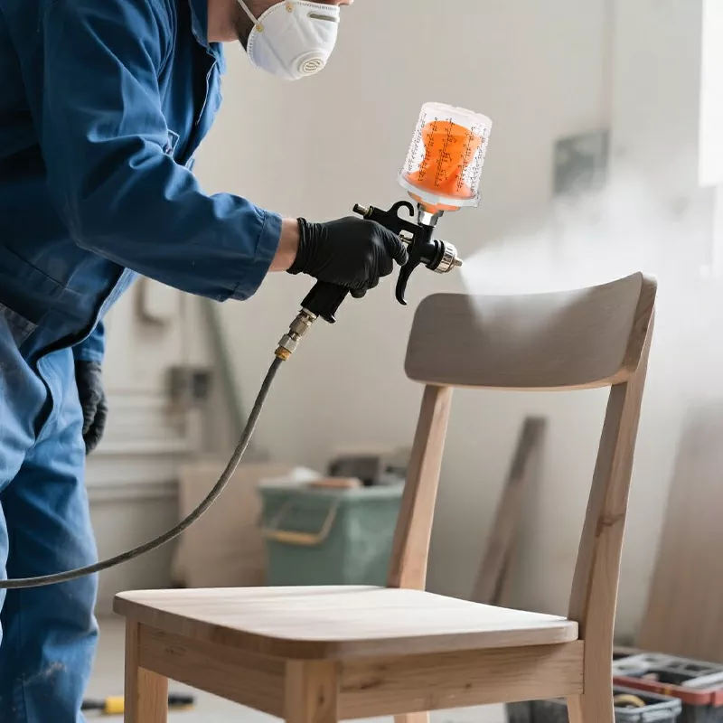 تتطلب عملية طلاء الأثاث إجراء تعديلات متكررة على زاوية مسدس الرش.ايسباتيضمن نظام كوب الرش القابل للتصرف دوران 360 درجة دون تسرب الطلاء، وينحني غطاء الكوب لاستيعاب زوايا الرش المختلفة. إنه مثالي لرش طلاء PU/NC على الأبواب الخشبية، والخزائن، والأثاث الخشبي الصلب.